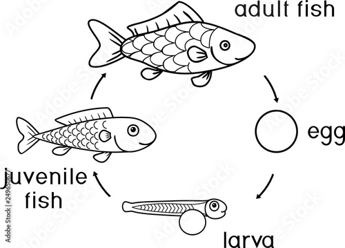 Coloring Page With Life Cycle Of Fish Sequence Of Stages Of
