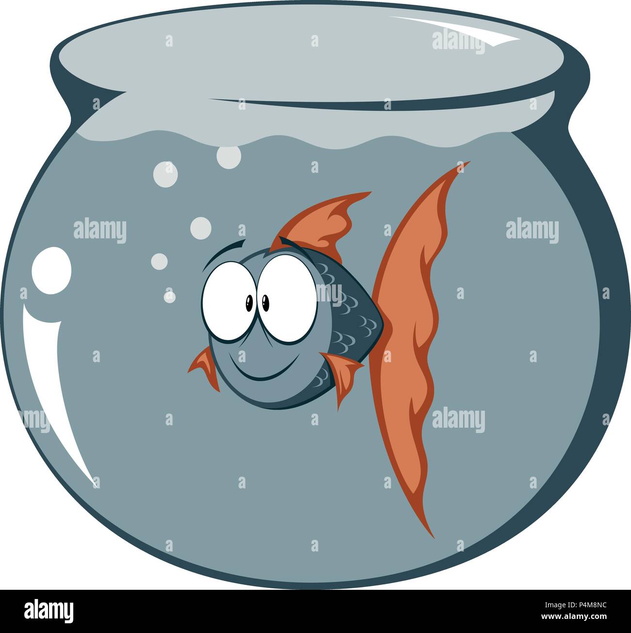 Cartoon Goldfish Blue And Orange Smiling In A Fish Tank Stock