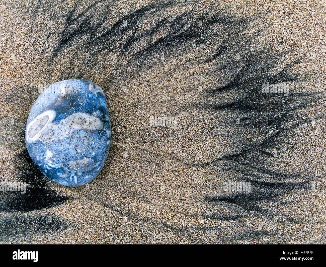 A Blue Stone Looks Like Earth Lies On The Sandy Beach By The Sea