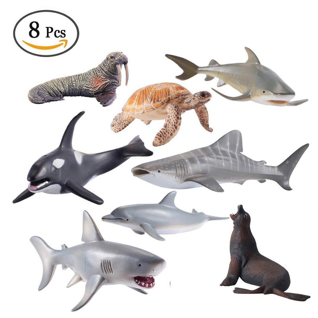 Ocean World Sea Life Animals Toys Shark Dolphin 8 Pack Figures