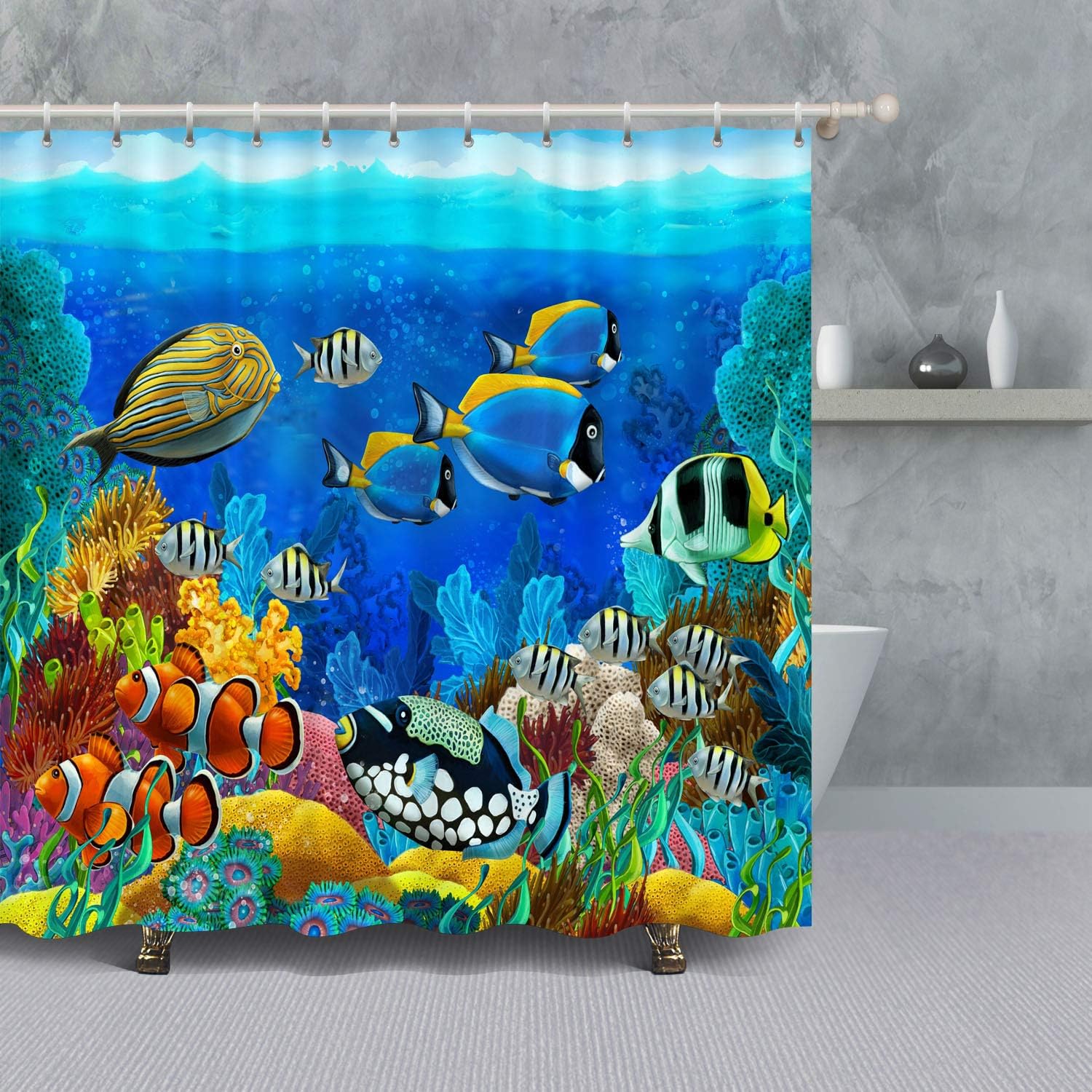 Vancar Ocean Decor Shower Curtain Beautiful Underwater World With