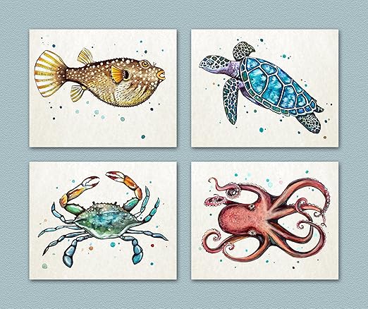 Amazon Com Little Pig Studios Sea Creature Ocean Animal Wall Art