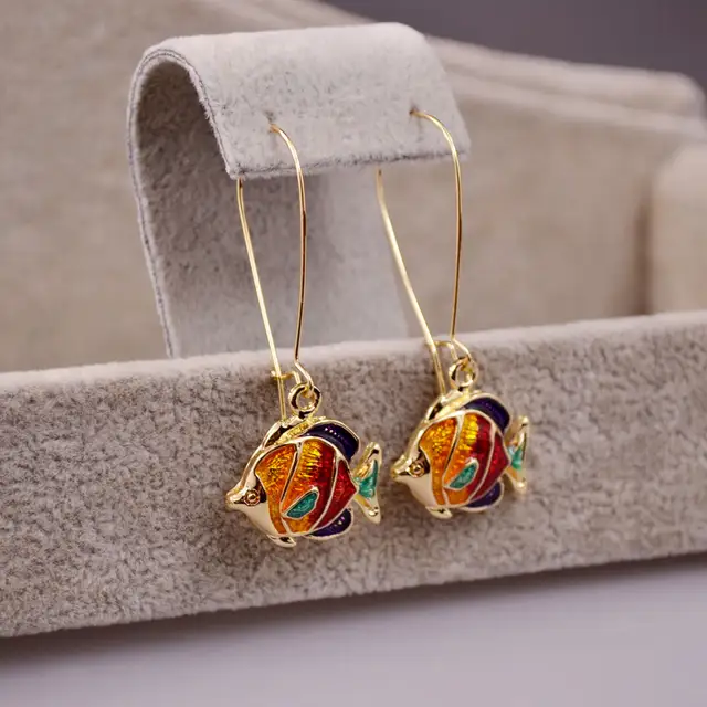 Gold Colorful Fish Enamel Earrings Sea Animal Jewelry Fish Drop