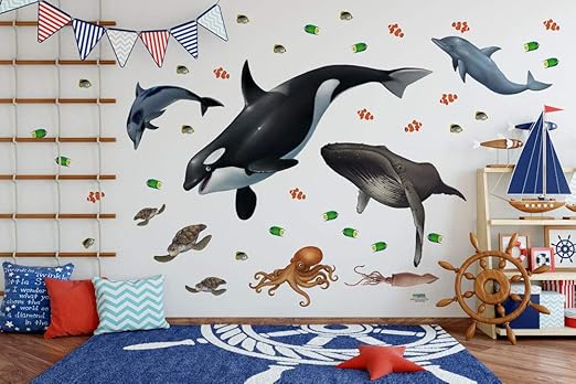 Sea animal mural. All of our environmentally friendly wall murals are custom made just for you. Add to wishlist under the ocean kids wallpaper mural. Killer whale room decal 3 whale mural decals 2 dolphin mural wall decals 2 total print size 4 our peel stick mural makes for easy decor for kids bedroom or playroom removable with no harm to surface.