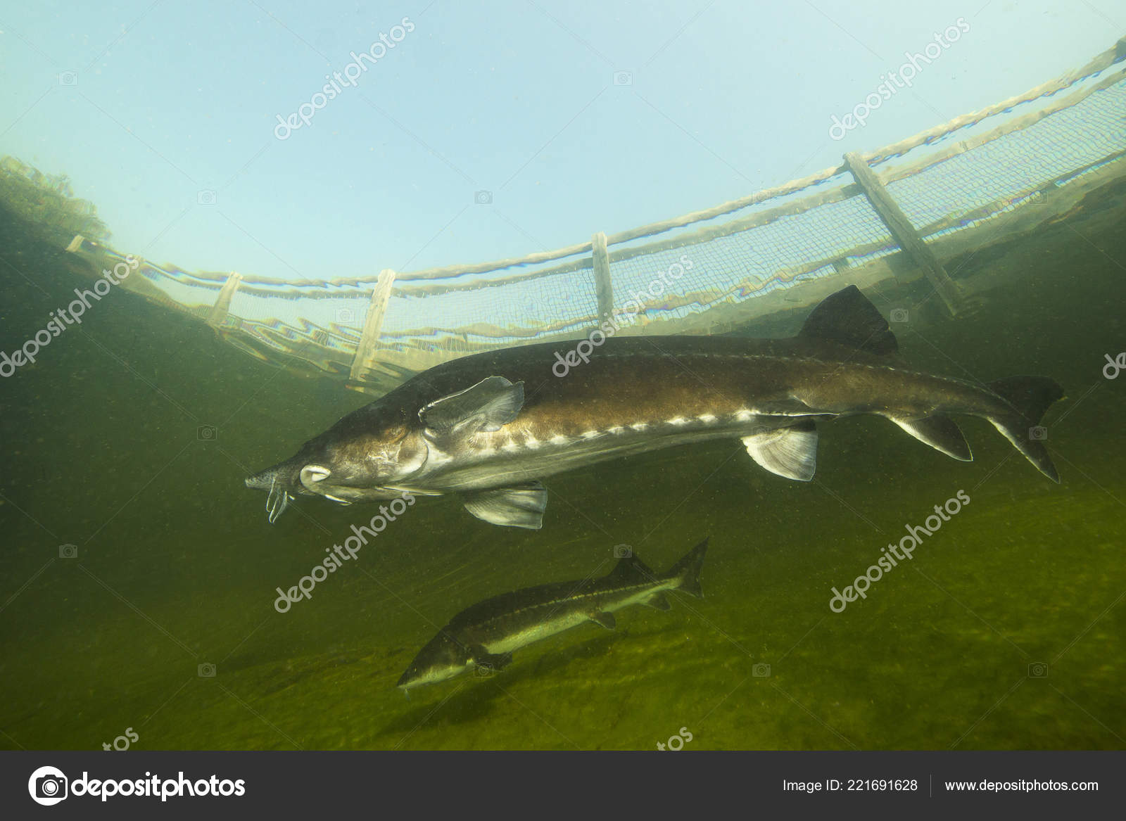 Biggest Fish Beluga Huso Huso Swimming River Underwater
