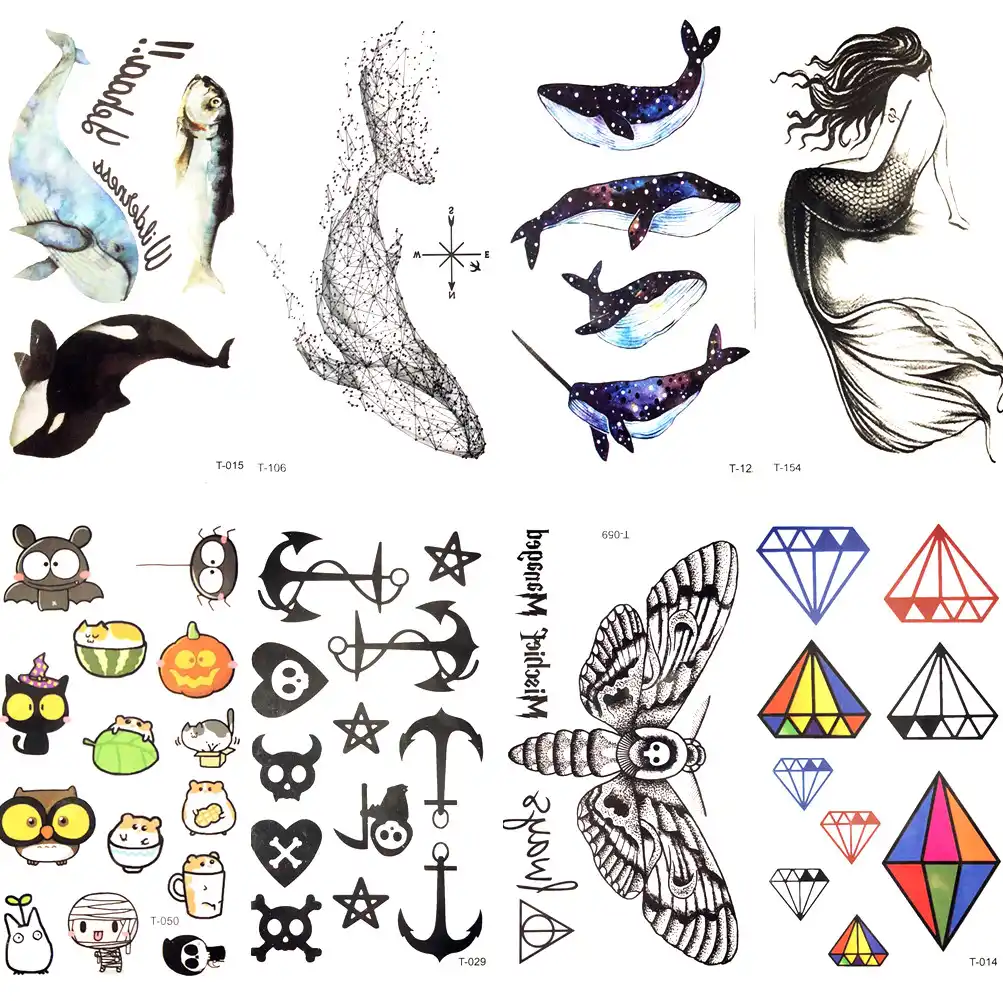 Tcool Whale Shark Sea Animals Temporary Tattoos Waterproof Women