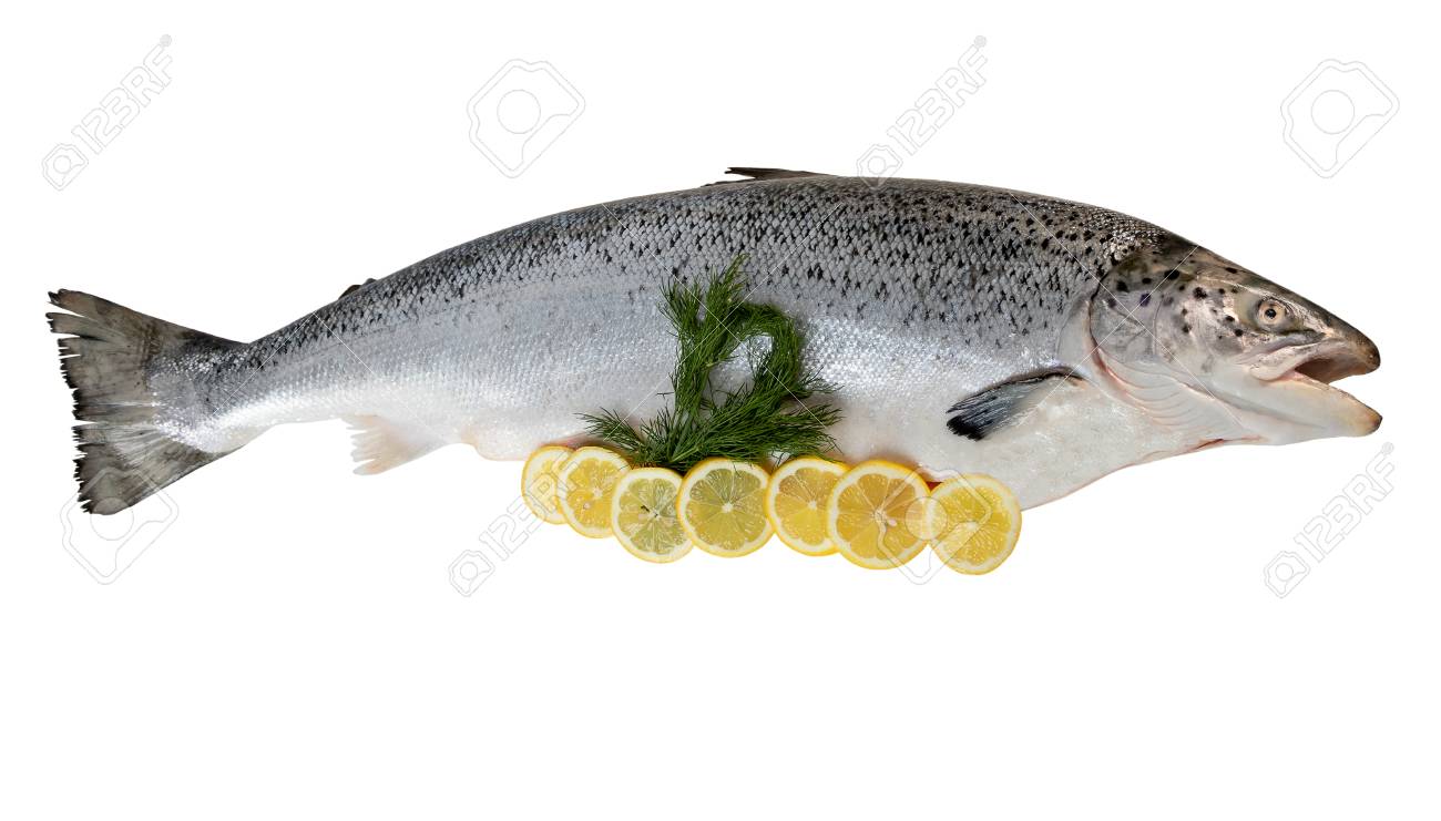 Salmon Fish Whole Fish Isolated On White Background Stock Photo