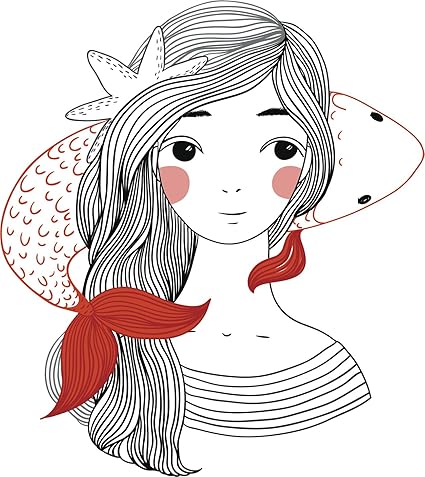 Amazon Com Pretty Kawaii Ocean Sea Girl Cartoon Pen Art Red Koi